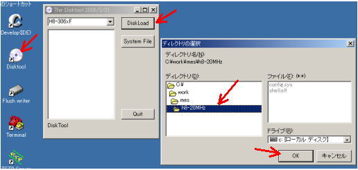Disktoolをダブルクリックして開き、対象がH8-306xFであることを確認し、 DiskLoadボタンを押します。①で作ったフォルダを指定してOKボタン楽天 を押します。