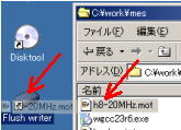 mot形式ファイル(h8-20MHz.mot)をドラッグ&ドロップでFlushwriterの上に落とします。