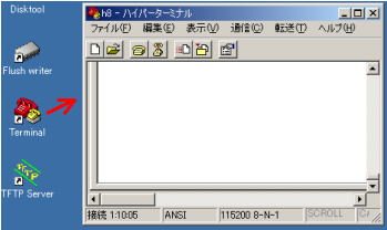 今回は、ハイパーターミナル上で、