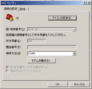 ハイパーターミナルの設定をします。このソフトはパソコン上でH8/3069ネット対応 マイコンと通信するために使います。