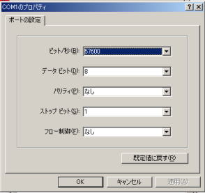 COMポートの番号を確認し(シリアルケーブルの繋がっている番号。大抵はCOM1)、