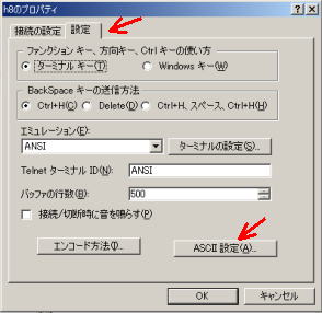 ASCII設定ボタンを押します。ASCII設定ウインドウが開きます。