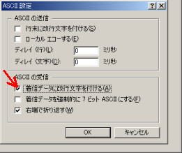 着信データに改行文字を付ける にチェックを付けます。