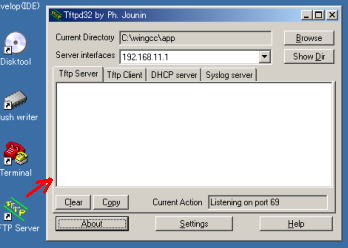 デスクトップ上のTFTP Serverをダブルクリックしてウインドウを開きます。
