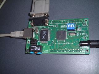 H8/3069ネット対応マイコンにLANケーブル、RS232Cケーブルを接続し、 MES覚え書き6の要領でマイコンと通信します。