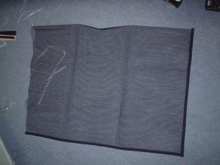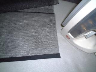チュールを1×0.8メートルほどに切り、長辺の方を折って0.5×0.8メートルの袋状に縫い付けます。網は目が粗いのでそのまま縫い付けるわけにはゆきません。