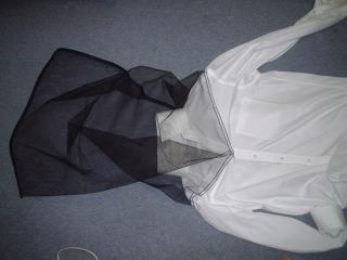 用意するものは、網生地(チュール)、使い古したカッターシャツ、針、糸、布テープ、接着テープ、バイアステープ縁取り用接着剤付き。