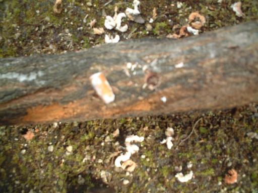 ピンぼけだけど、右が穴、左の円筒が駒。白いのは菌糸