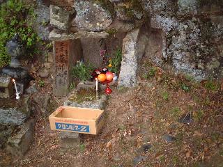 きた道を戻る。さっき出てきた道を過ぎてすぐのところの左に抜ける道に入る。両側は田んぼだ。すぐにT字路になるので右折。左側の民家の塀がきれたところに小道があるので、そこに入る。道は岡を上り始め...墓場に出る。十五番札所はなんと墓場の一番奥だ。