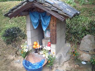 元の道に戻って南に向かう。結構大きいのですぐに分かる。広さは6畳くらいと、今まで見た中で最大の大きさ。中にはおばあちゃんたちの井戸端会議用?のベンチまである。