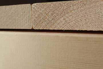 1×6材3枚を並べ、1×4材を横に渡して固定します。箱側の奥行きは1×6、2枚+1×4、1枚分なので、蓋の方が幅広で、少しとびだすようになります。