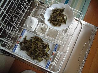 そして乾燥。食器洗い機を使ってみました。時々開けてかき混ぜながらカラカラになるまで続けます。右は乾燥終了後。