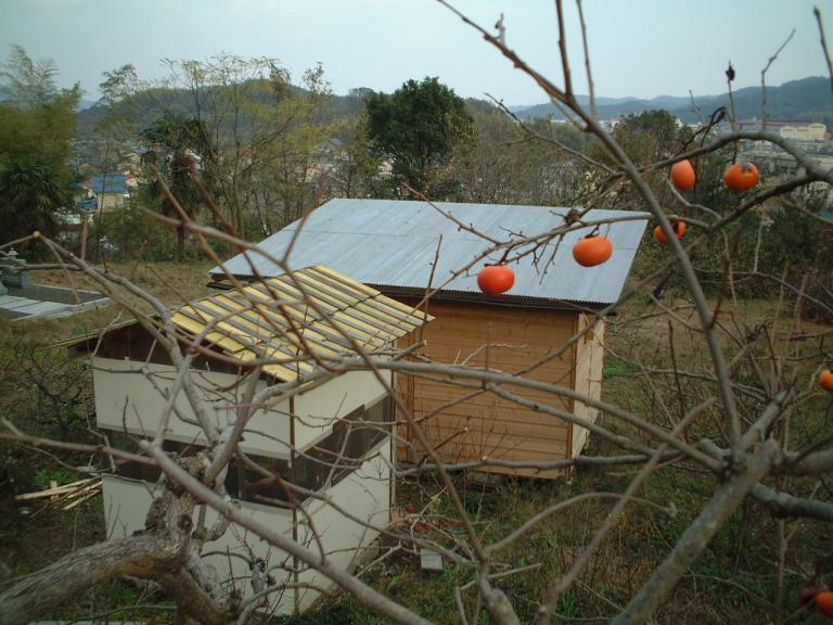 木の上から見た周りの風景。手前が鶏小屋、奥が蜂小屋楽天