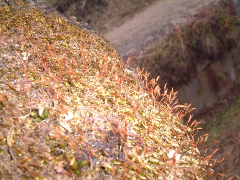 下の写真は苔。図鑑を見ても種類はよくわからない。実のようなものは胞子の入った袋。
