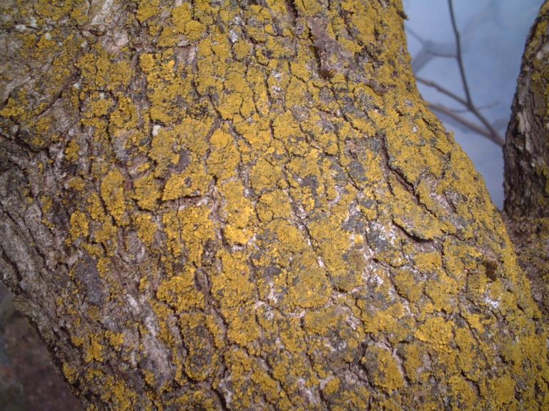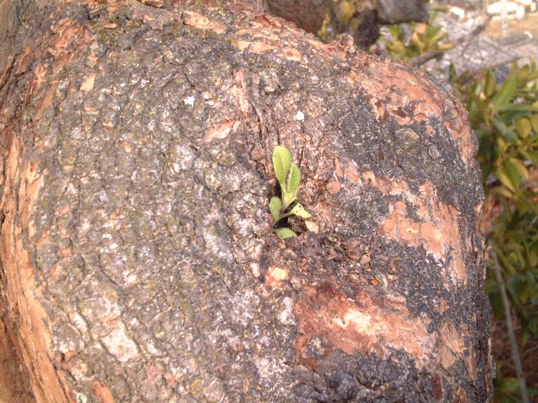 柿の幹にはいろいろな植物が生えていて面白いので、写真に撮ってみました。