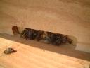 日本ミツバチはこれが気に入らないらしく、穴を大きくしようといまだに齧り続けています。齧り係の蜂が邪魔で?西洋ミツバチが入れなかったのかも知れません。