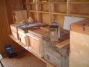 蜂舎内から見た巣箱。一番奥が日本ミツバチ。他は全て西洋ミツバチ。