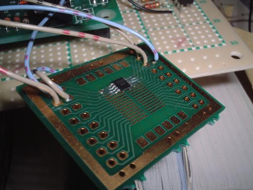 ADコンバータを動かしてみました。使ったのはADS8320という分解能16BITのもの。12BIT以上のADコンバーターはなかなか売っていないので入手に苦労しました。ついでに小さいので半田付けも苦労しました。