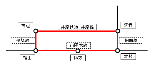 家の近くには山陽本線が通っていて、移動にはこちらを使えば良いし、井原鉄道沿いの観光地(美術館とか)